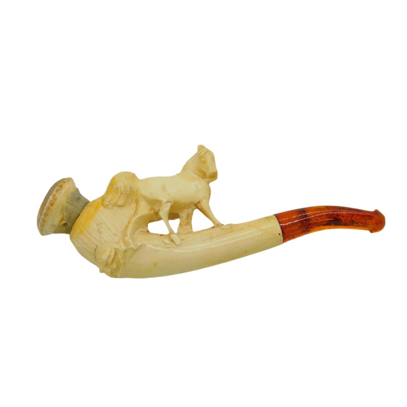 Details: A fantastic and wonderfully designed antique 19th century meerschaum & block amber smoking pipe depicting a standing horse c1880. This is a wonderful item that would make a perfect gift or addition to any collection. The BOX pictured is for PRESEN