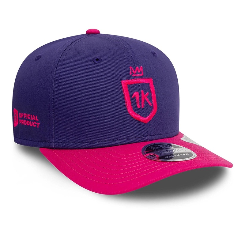 Kings League Draft 1K FC 9SEVENTY Stretch Snap CapOnly available to buy and ship in Spain1K FC logo on frontKings League logo with Official Product wordmark embroidered on rightNew Era Flag embroidered on leftStructured crownStretch SnapCurved pink visorPi