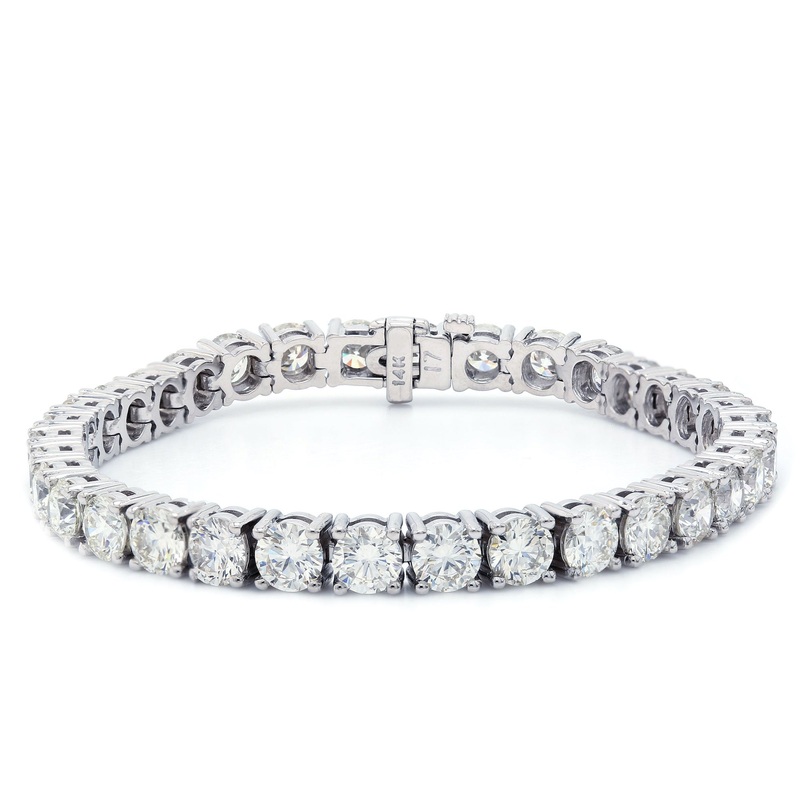 The ultimate statement of luxury. Crafted in 14K white gold featuring 20.00ctw lab-created diamonds. Length: 7.25″. Certified authentic.