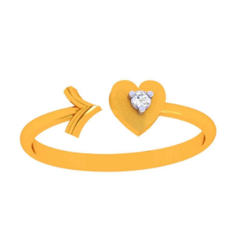 This extremely beautiful gold open ring design for women & girls carved into the shape of a heart with an arrow is from our online exclusive collection that comes with the BIS hallmark. The 0.5cm*1.95cm*0.5cm dimensioned yellow gold ring weighs 1gm and hen