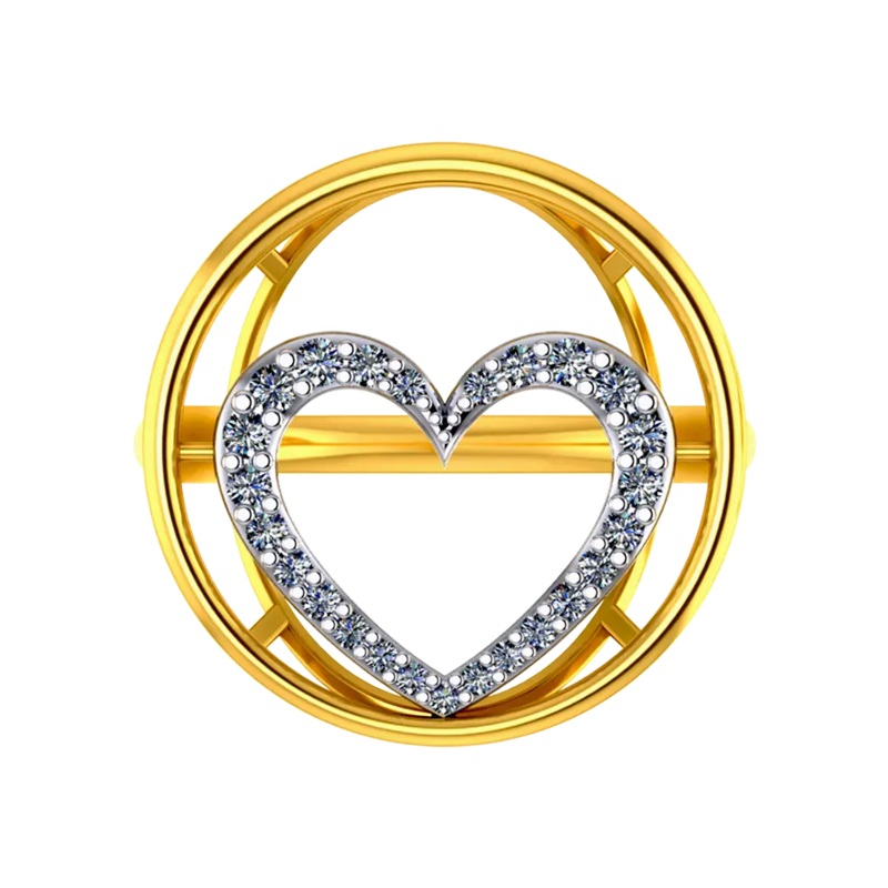 22k Gold Ring With A American Diamond Studded Heart In The Centre Of A Circle On Top