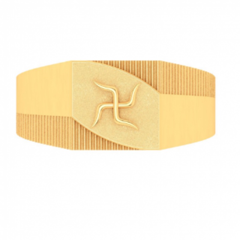 PC Chandra Jewellers' Goldlites Collection presents an exquisite 22k gold ring featuring a stunning swastik symbol. Crafted with expert precision, the ring boasts a smooth, polished finish that gleams in the light.