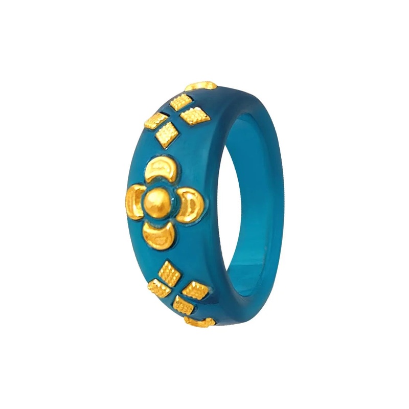 Be the first to review “22KT (916) Yellow Gold Blue Pola Ring With Floral Embellishments For Women & Girls (Size 16)”