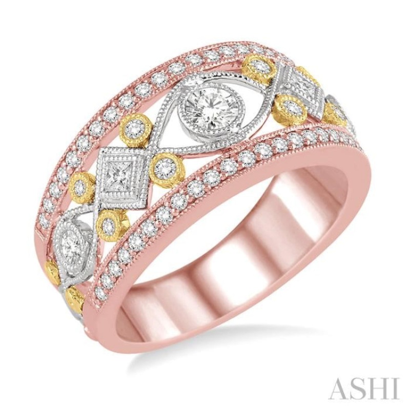 3/4 Ctw Diamond Fashion Band in 14K Tri Color Gold