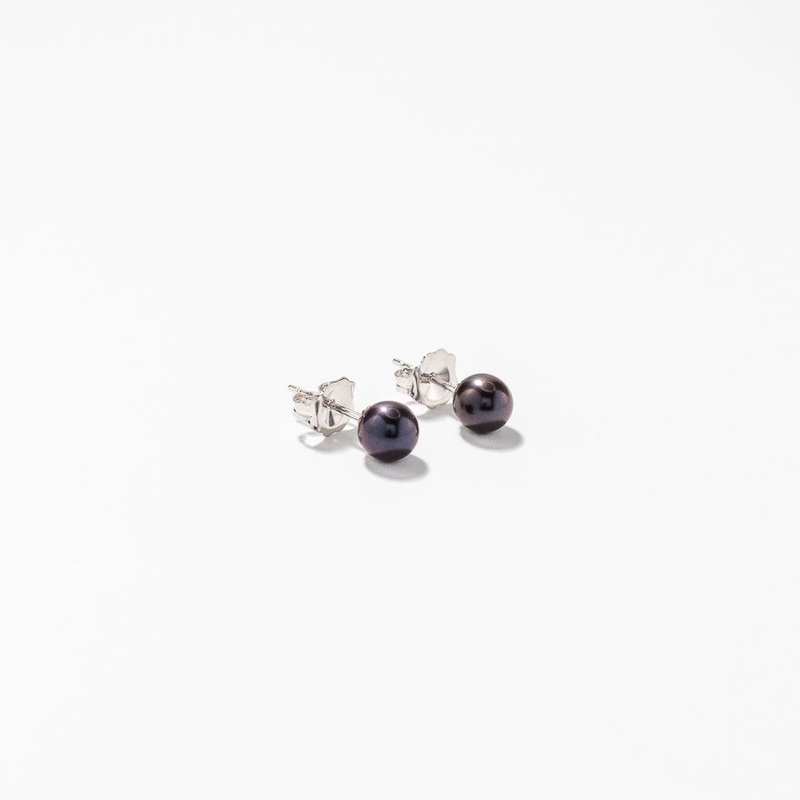 These lovely stud earrings is a striking blend of sophistication and mystery. Finely crafted in 14K white gold, each earring features a 5-5.5mm black cultured pearl. This timeless look is a bold statement that is sure to turn heads.