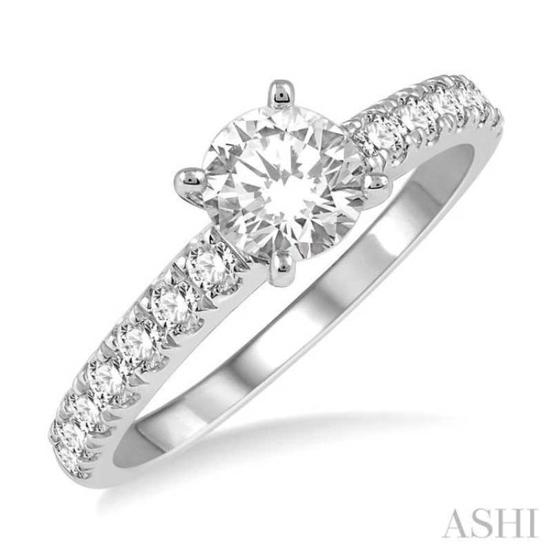 Classy and aesthetically appealing, this diamond ladies engagement ring makes a thoughtful buy. It is the kind of ring that can grab the attention of any woman with great ease. The ring is beautifully styled and laid with gleaming round cut diamonds. It features a 1/3 ct round cut diamond centre stone, which is flanked by 18 split prong set round cut diamonds that embellish the shank, 9 diamonds on either side. The engagement ring is moulded in rhodium finish 14 karat white gold. Total diamond weight is 5/8 ctw.