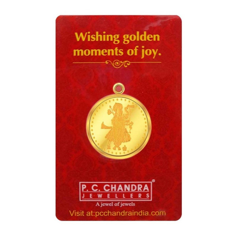 Invoke the strength and power of Lord Srinathji to tackle all your problems and tribulations. This beautiful 24k gold coin pendant comes with a gorgeous motif of Lord Srinathji, and its a very holy piece to own or gift your friends and relatives. It comes with a BIS hallmark as a proof of its authenticity, and weighs 5 gm.