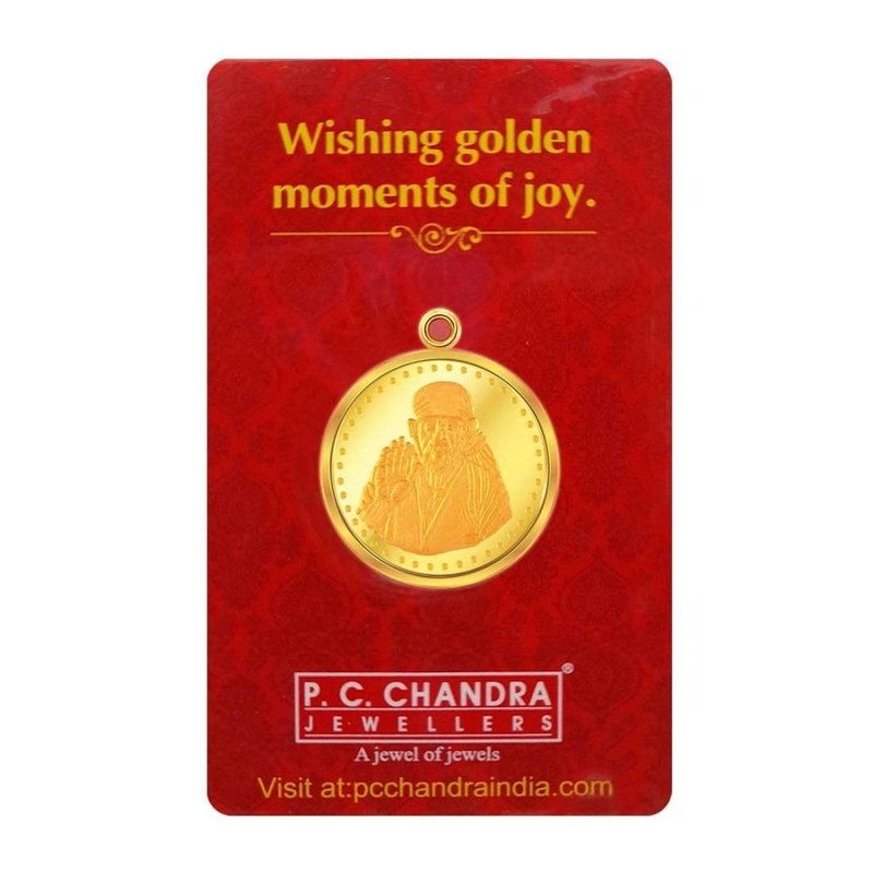 Welcome the peacefulness and sublime goodness of Shirdi Sai Baba into your home and your life with this 22k Gold coin pendant beautifully designed with his motif. The coin is crafted in yellow gold and weighs 5 gm, comes BIS hallmarked for authenticity. Let Shirdi Sai Baba’s blessings fill your hearts and your homes this year, and for all the years to come.