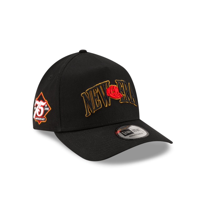 The 75th Retro Black 9FORTY A-Frame Adjustable Cap features:Embroidered graphic at the front panelsEmbroidered patch at the right-wear sideNew Era Flag logo patch at the left-wear sideOpen back style with metal clasp closurePre-curved visorColor: BlackFabr