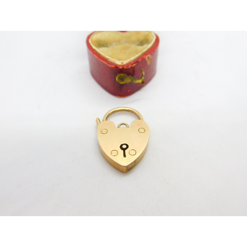 Traditionally used to secure a charm bracelet, this is a great secure antique heart shape padlock clasp dating from the Edwardian era. The gold is marked simply '9ct' to the rear. Good hinge to open and secure. A really useful antique padlock.Size 2.7 x 1.