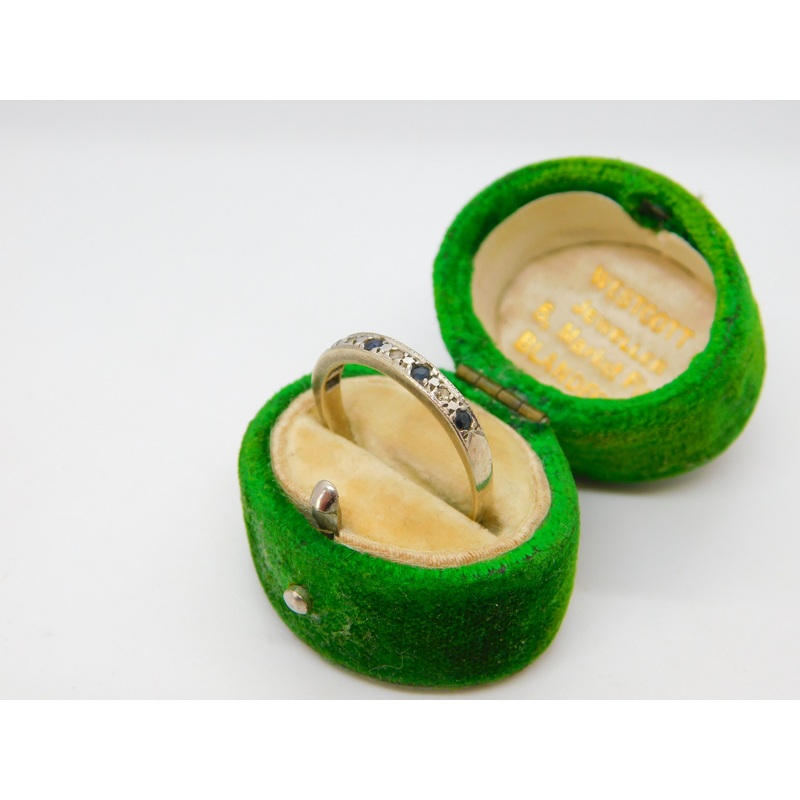 Details: A fantastic and wonderfully designed vintage 9ct yellow gold, sapphire & diamond set half eternity ring hallmarked London 1980 to the interior band. The stones have all been tested. This is a wonderful item that would make a perfect gift or addition to any collection. The BOX pictured is for PRESENTATION ONLY and is NOT included in the listings but used to frame the pictures unless specifically stated otherwise.