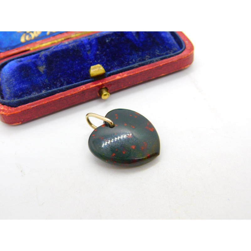 Details: A fantastic and wonderfully designed antique Victorian 9ct rose gold bale carved bloodstone heart drop pendant with charming detailing and great colour to the stone c1900, the gold has been XRF tested. This is a wonderful item that would make a pe