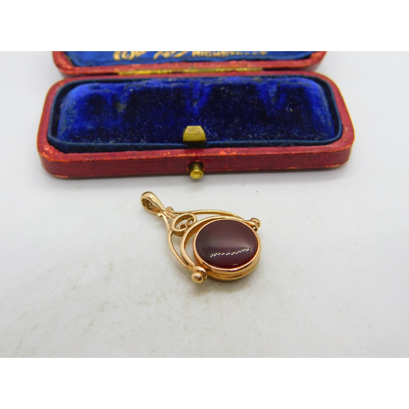 Details: A fantastic and wonderfully designed vintage 9ct rose gold carnelian and nephrite jade spinner fob pendant with lovely design hallmarked Birmingham 1990 to the edge. This is a wonderful item that would make a perfect gift or addition to any collec