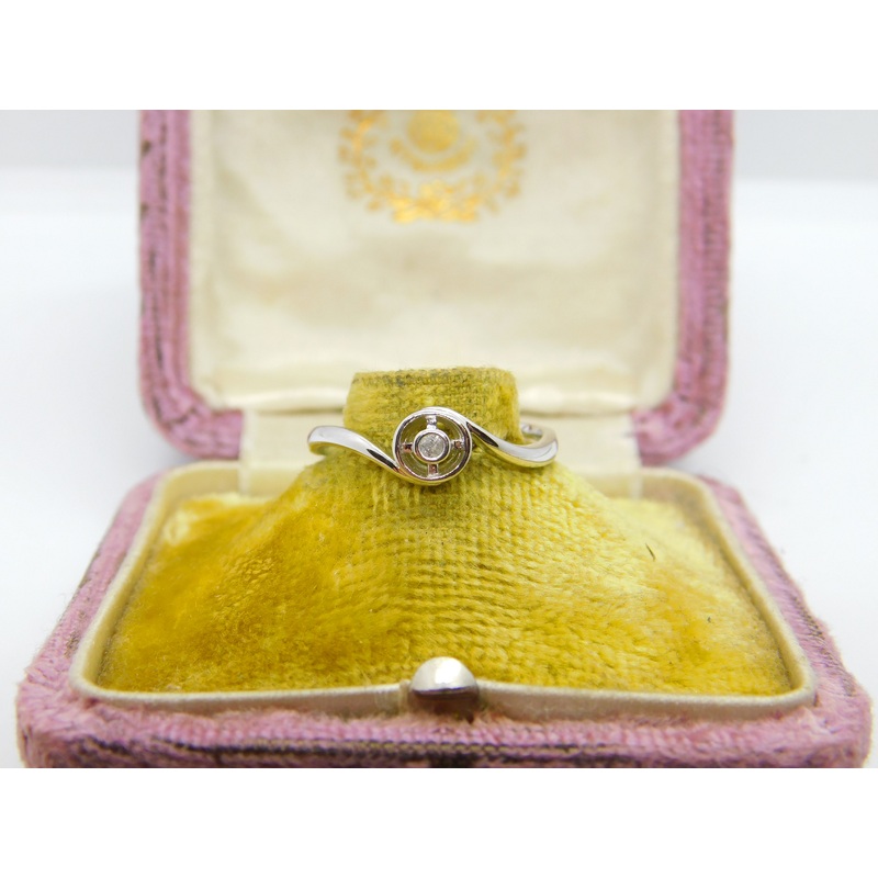 Details: A fantastic and wonderfully designed vintage 9ct white gold crossover ring set with 0.05ct central diamond hallmarked London c1990, the diamond has been tested. This is a wonderful item that would make a perfect gift or addition to any collection.