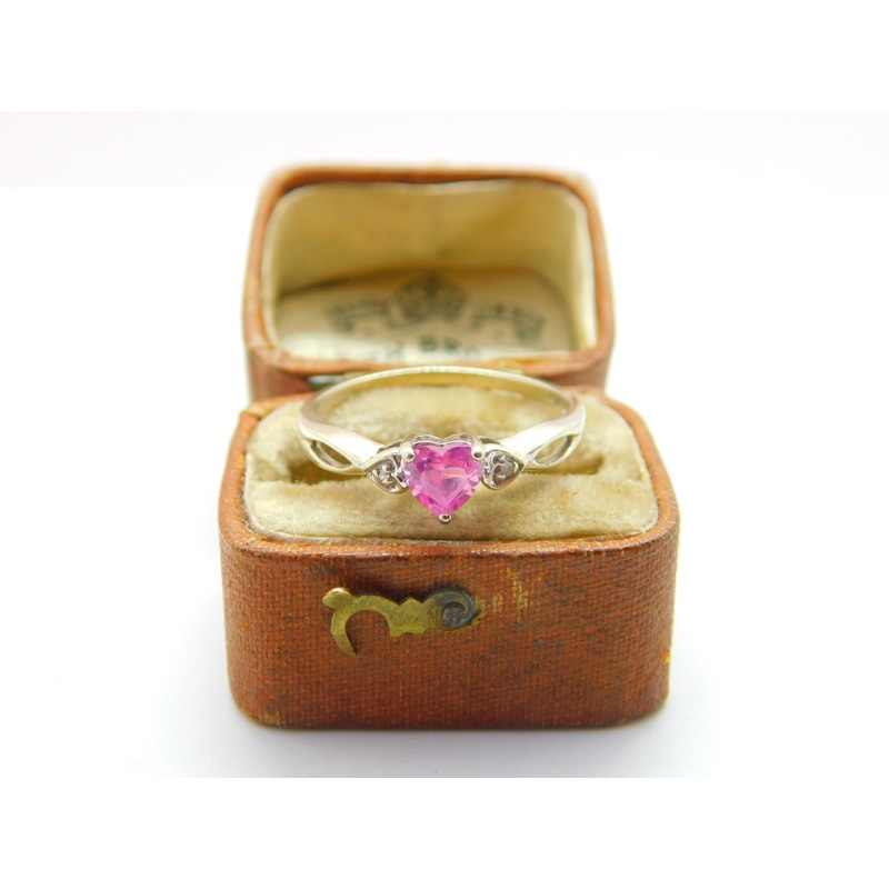 Details: A fantastic and wonderfully designed vintage 9ct white gold, heart cut pink topaz & diamond set band ring hallmarked Birmingham c1990 to the interior band. This is a wonderful item that would make a perfect gift or addition to any collection. The BOX pictured is for PRESENTATION ONLY and is NOT included in the listings but used to frame the pictures unless specifically stated otherwise.