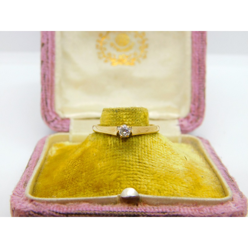 Details: A fantastic and wonderfully designed vintage 9ct yellow gold 0.1ct diamond solitaire ring hallmarked Birmingham c1990, the diamond has been tested. This is a wonderful item that would make a perfect gift or addition to any collection. The BOX pictured is for PRESENTATION ONLY and is NOT included in the listings but used to frame the pictures unless specifically stated otherwise.