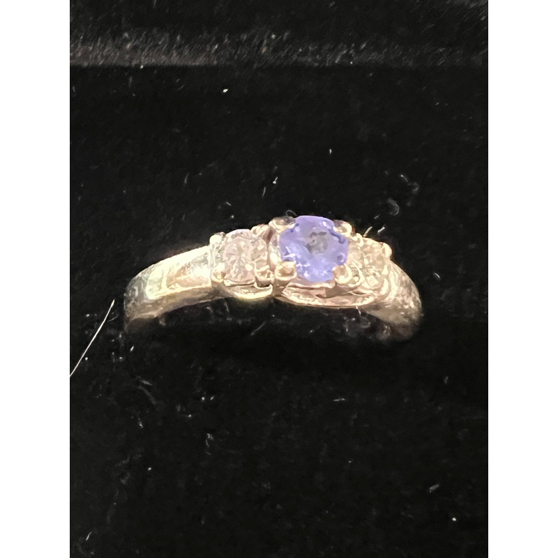 A Bespoke pretty three stone diamonds and tanzanite ring set in 9ct gold with central tanzanite stone and two diamonds either side. Excellent value and will be delivered with the Elite HNW warranty and an elite HNW branded ring box .