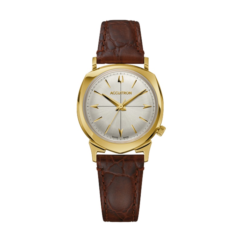 With only 600 pieces available of this limited edition Alpha gold tone stainless steel case design, this Legacy collection timepiece from Accutron harkens back to the original 505 featuring the iconic Alpha case design and released in the 1960s.MOVEMENTAcc