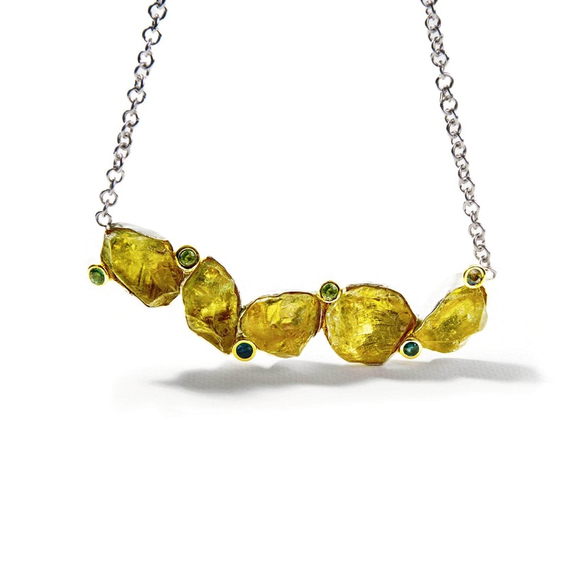 Stones: Rough Lemon Quartz, Blue and Green Sapphire