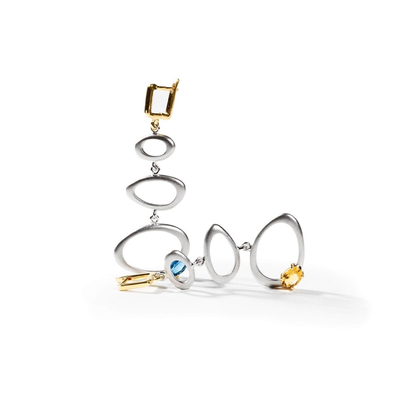 These irregular silver earrings with natural Citrine and London Blue Topaz accents remind you of Antoni Gaudi’s architecture, adding a touch of contemporary design and artistic flair to any outfit.