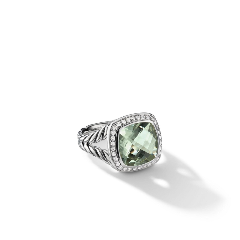 Sterling Silver Faceted Prasiolite, 11mm, Pav Diamonds, 0.22 total carat weight Ring, 15mmStyle# R12308DSSAPLDI8