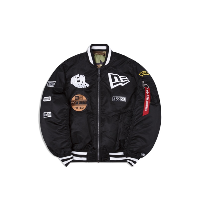 The Alpha Industries x New Era MA-1 Bomber Jacket features embroidered New Era patches throughout the chest andsleeves withan embroidered appliqueNew Era wordmark at the rear. Additional details include a utility pocketwiththe Alpha Industries ribbon at th