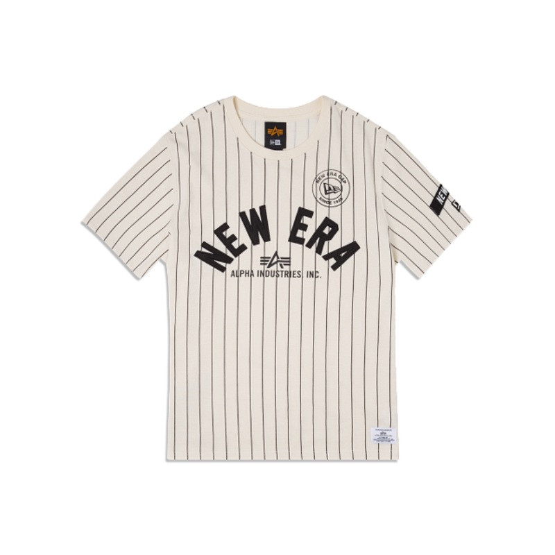 The Alpha Industries X New Era Striped T-Shirt features an embroidered applique Alpha industries and Alpha Industries logos at the front with additional logos screen-printed at the rear.Care Instructions: Machine wash with cold water Delicate cycle Use onl