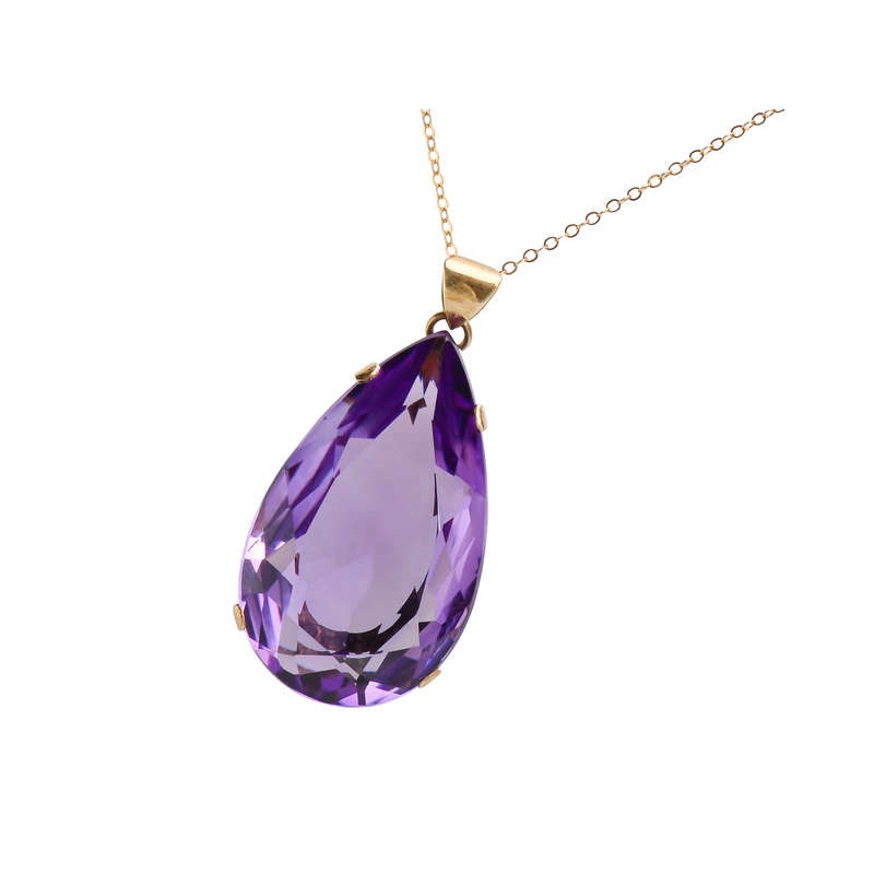 At 16.75 carats, this natural pear shaped and faceted beauty reflects and refracts color from every angle.Medium to paler hues of lilac, grape and orchid tones dance around the stone as you move. Large and impressive, it is set into 10k rose gold in an air