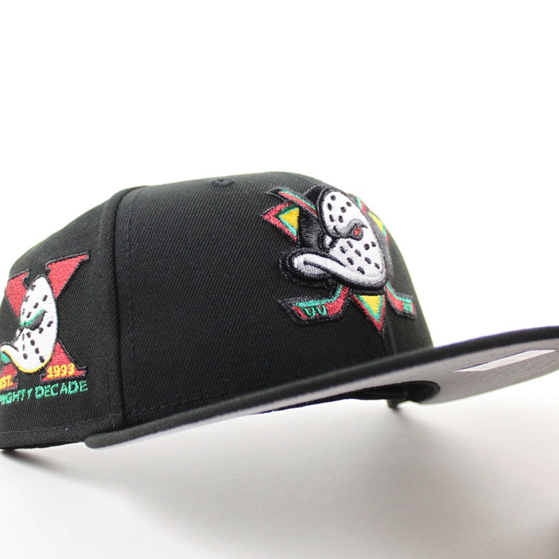 Anaheim Ducks 1993 All Star Game New Era 59Fifty Fitted Hat in Black and Gray Under brim.Inspired by Malcom X with our own twisted to