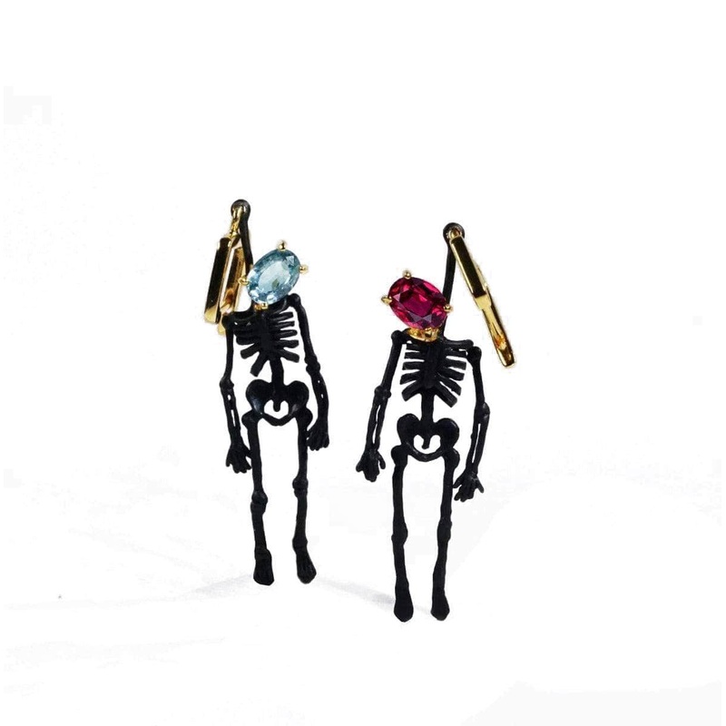 Remember that you are dust and to dust you shall return. Well, at least stay pretty.Metal: 925 SilverStones: Blue Topaz, GarnetPlating: Black Anthracite, 18K GoldWidth15 mmLength61 mmWeight 6.77 g