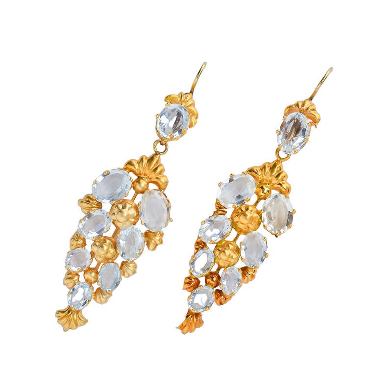 The surmounts feature one aquamarine, and the removable drops seven in graduated sizes.