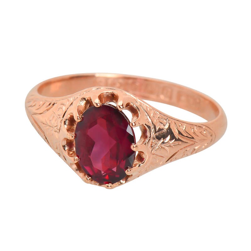 Antique Garnet Rose Gold Ring of 1909