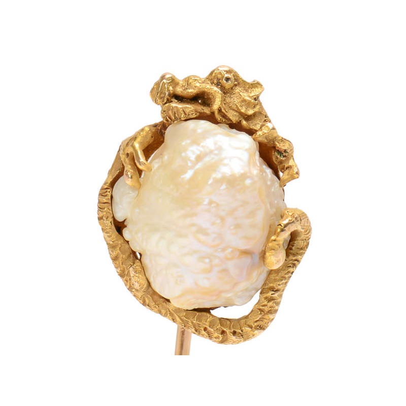 Antique Gold & Natural Pearl Dragon Stickpin