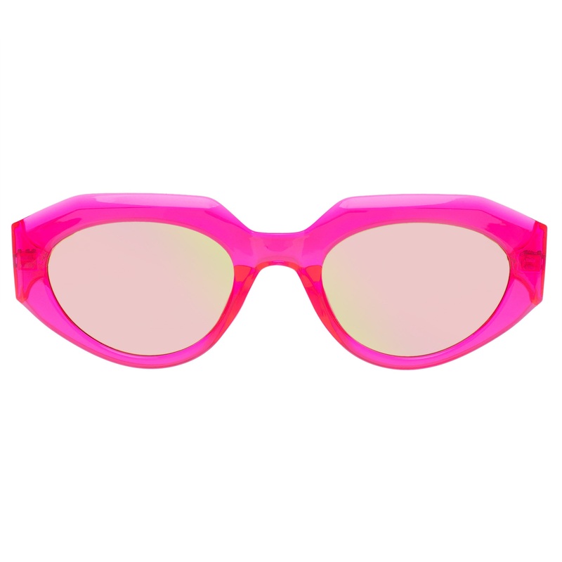 Finished in a neon pink frame with pink mirrored lenses.