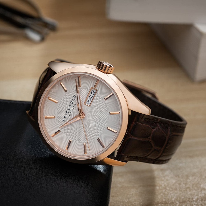 Each Aries Gold Watch comes with its very Own Wooden and Velvet Presentation Box.