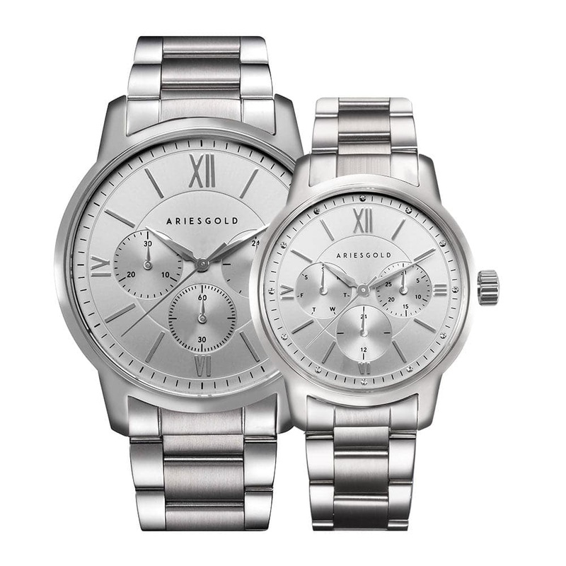 Embrace the enduring elegance of time with the Eternal, a couple’s watch crafted for those who cherish lasting legacies. Inspired by the classics that refuse to fade, the Eternal embodies the unwavering strength of black, the boundless harmony of timeless music, and the purity of everlasting love. A durable embrace, the Eternal’s case and band speak of steadfast commitment, polished to a brilliant shine. Bold strokes on the bezel proclaim a bond that rises above the ordinary, each press a reminder of your shared passion. A whisper of refined sophistication, Roman numerals dance across the dial, adding a touch of timeless grace. Inside beats a reliable Japanese powerhouse, ensuring every moment is counted with unwavering accuracy. Like love itself, the Eternal remains pristine. A shield of sapphire crystal safeguards the dial, impervious to everyday wear and tear. A tribute to classic design, the chronograph unfolds in three sub-dials, presenting seconds, minutes, and 24-hour time at a glance. Every detail whispers luxury. Applied indexes and a brushed, polished case create an experience that’s both exquisite and enduring. A confident statement around your wrist, the solid-steel bracelet offers secure comfort. Choose the warmth of hand-stitched leather, effortlessly changing styles with the quick release system. Underneath it all lies mechanical excellence. The trusted VR31A and VX3JE quartz movement delivers dependable precision, worthy of a watch built to last. Live life to the fullest. The Eternal’s 5-bar water resistance shields it from daily adventures, from splashes to light rain. Add your story to the canvas of time. Elevate the Eternal with personalized touches, making it a true reflection of your love’s unique journey.