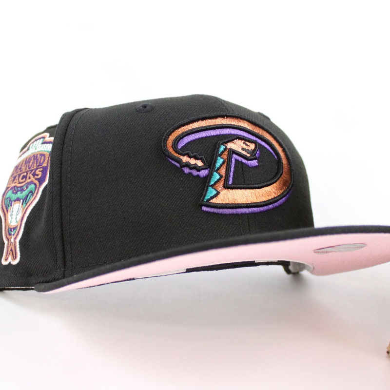 Arizona Diamondbacks 1998 Inaugural Season New Era 59Fifty Fitted Hat in Black & Pink Under Brim.
