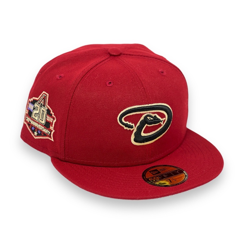H-RED 20TH ANNIVERSARY ARIZONA DIAMONDBACKS FITTED GREY BRIM. THIS NEW ERA 59FIFTY FITTED RETRO GREYBRIM HAS A BLACK SWEATBAND.Style Code:D-BACKS-753820Logo Color: Official Logo ColorHat Color: H-Red, Grey Under Visor, Black SweatbandFabric: 100% Polyester