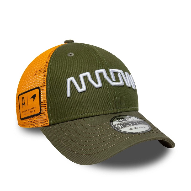 Indycar Nolan Siegel Arrow McLaren Green 9FORTY CapArrow McLaren logo on frontArrow McLaren sidepatch on rightBird motif on rear archMcLaren Racing woven tab on rear rightNew Era Flag embroidered on leftStructured crownStrapbackCurved dark green visorDark