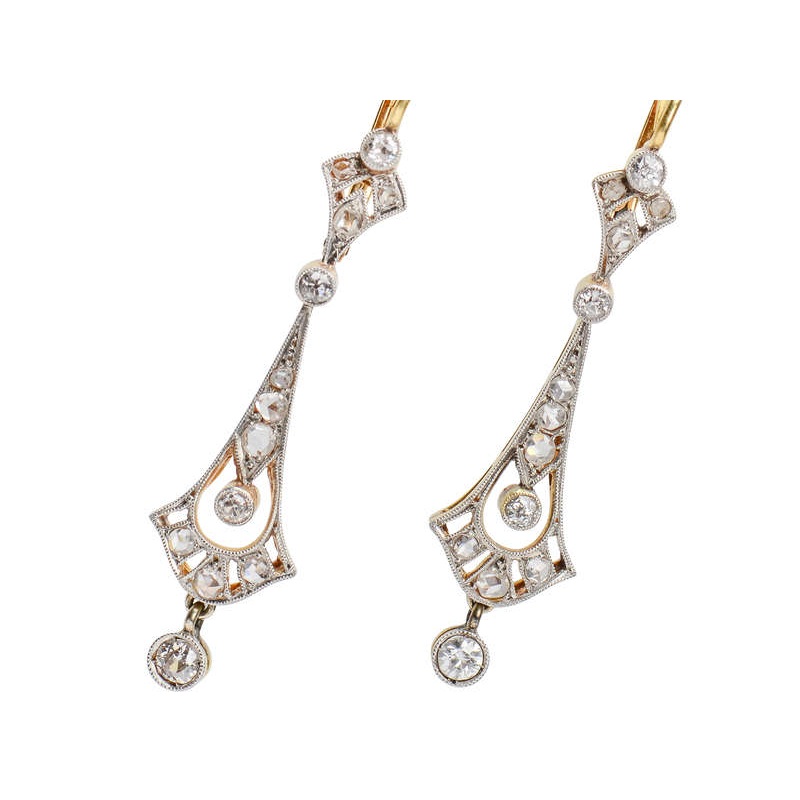 Finally, an authentic and affordable pair of Art Deco diamond earrings. Prices continually rise as they are highly desirable, often aesthetically captivating, and scarce. Three parts of sublime, these earrings are articulated to move and sway in a natural