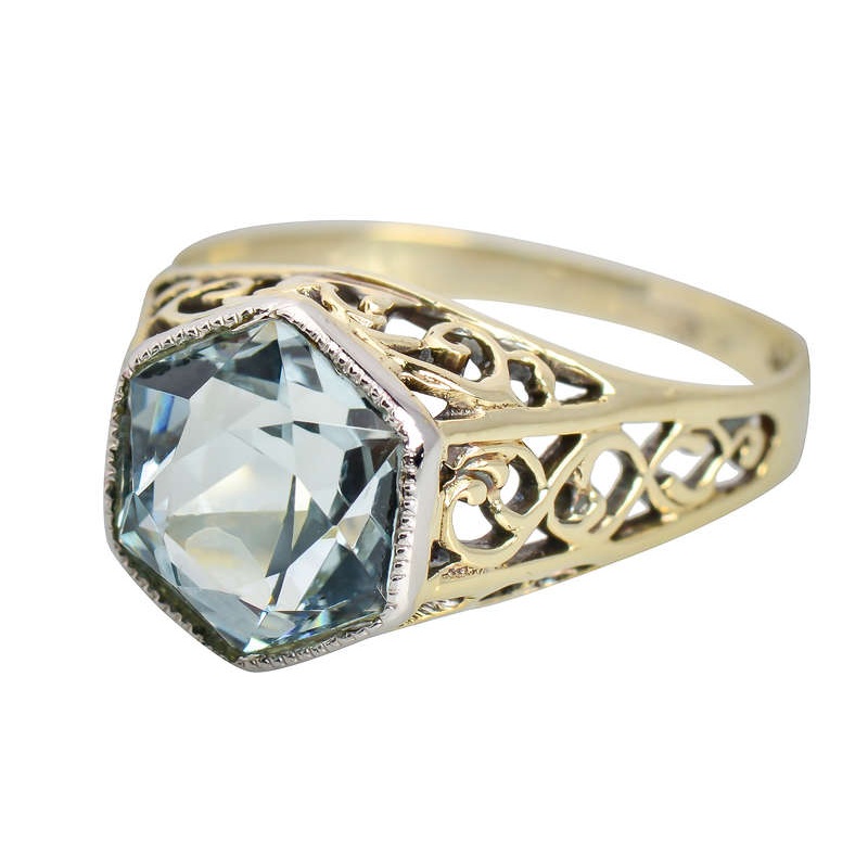 Art Deco Filigree Two Color Aquamarine Ring