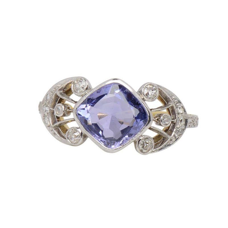 Art Deco Lilac Color Shift No Heat Sapphire Ring