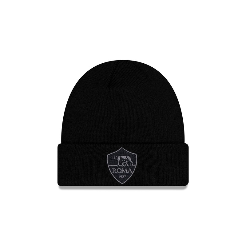 The AS Roma Black Cuff Knit Hat features a black embroidered AS Roma shield at the front.