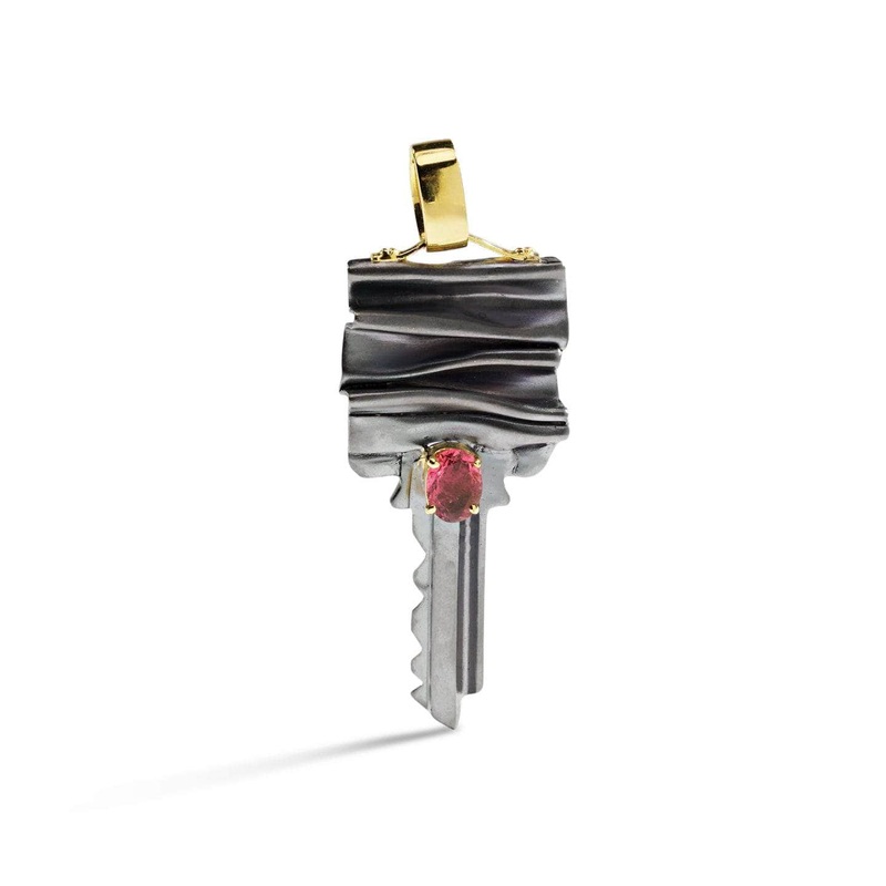 Forget the doors, here's your key to every heart.Metal: 925 SilverStones: RhodolitePlating: Black Rhodium, 18K GoldWidth 65 mmLength 24 mmWeight 12.14 g