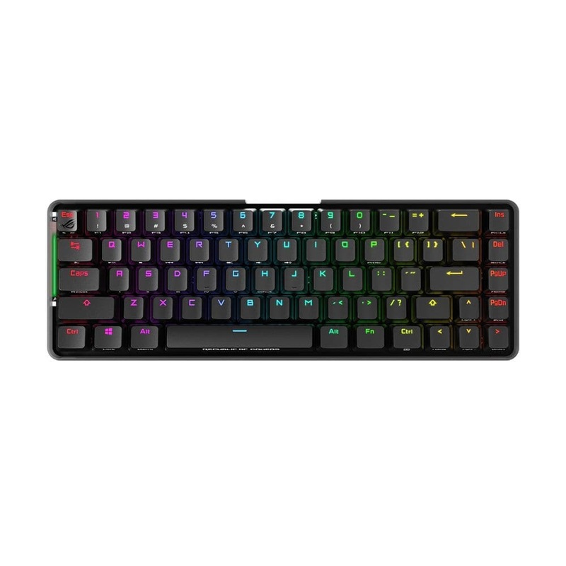 COMPACT, WITHOUT COMPROMISEROG Falchion is a 65% form-factor wireless mechanical keyboard designed to change the way you play. It has an interactive touch panel and innovative two-way cover case, and its the first ROG keyboard with wireless Aura Sync RGB l