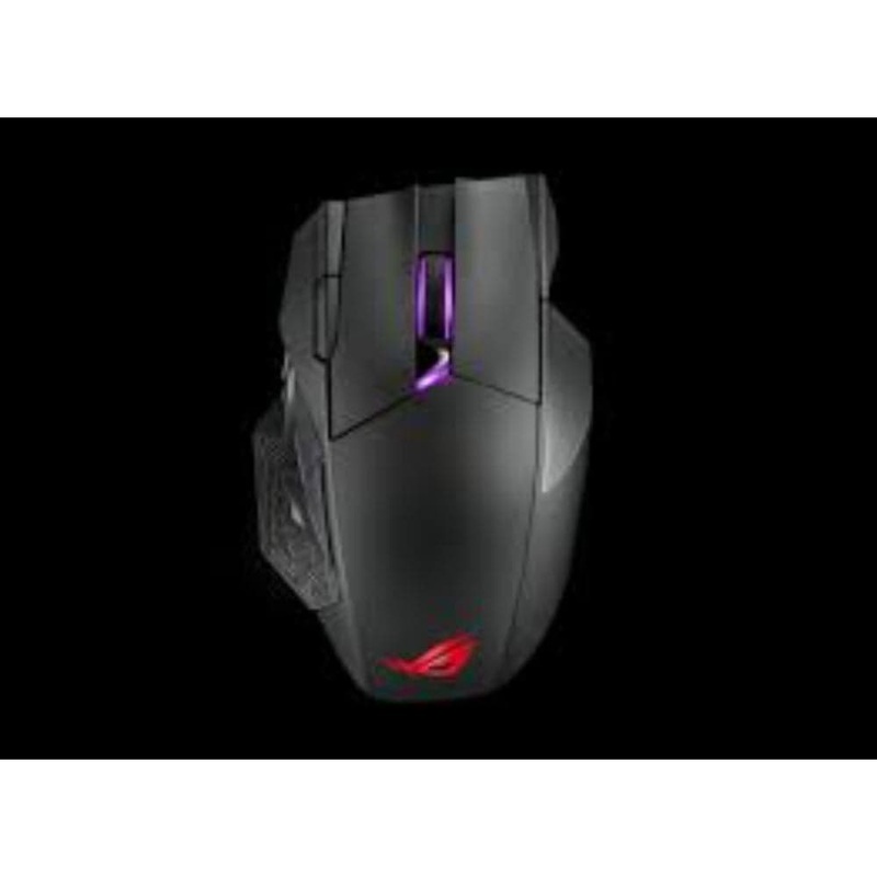 Wireless gaming mouse with dual-mode connectivity (wired / 2.4 GHz) with magnetic charging stand, 12 programmable buttons, specially tuned ROG 19,000 dpi sensor, Exclusive Push-Fit Switch Sockets, ROG Micro Switches, ROG Paracord and Aura Sync RGB lighting.