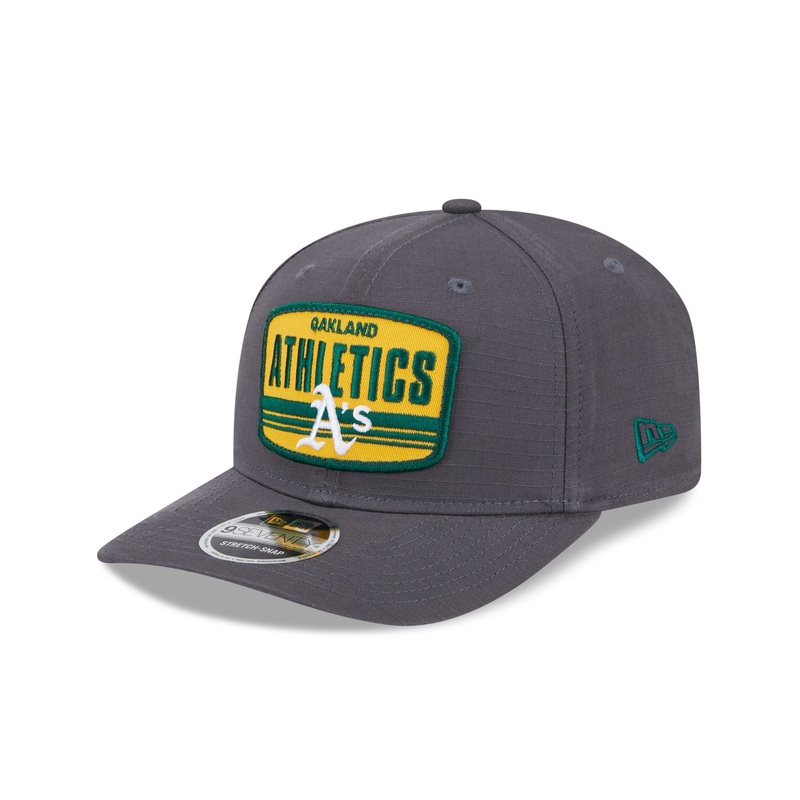 The Athletics Team Elevated 9SEVENTY Stretch-Snap Cap features an embroidered Athletics logo at the front panels with a matching New Era Flag at the left-wear side. Additional details include a gray undervisor and a snapback closure at the rear.