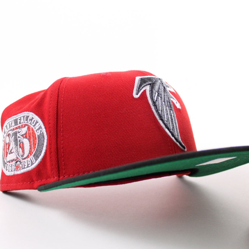 Atlanta Falcons 25th New Era 59Fifty Fitted Hat in Red & Black with Green Under Brim.