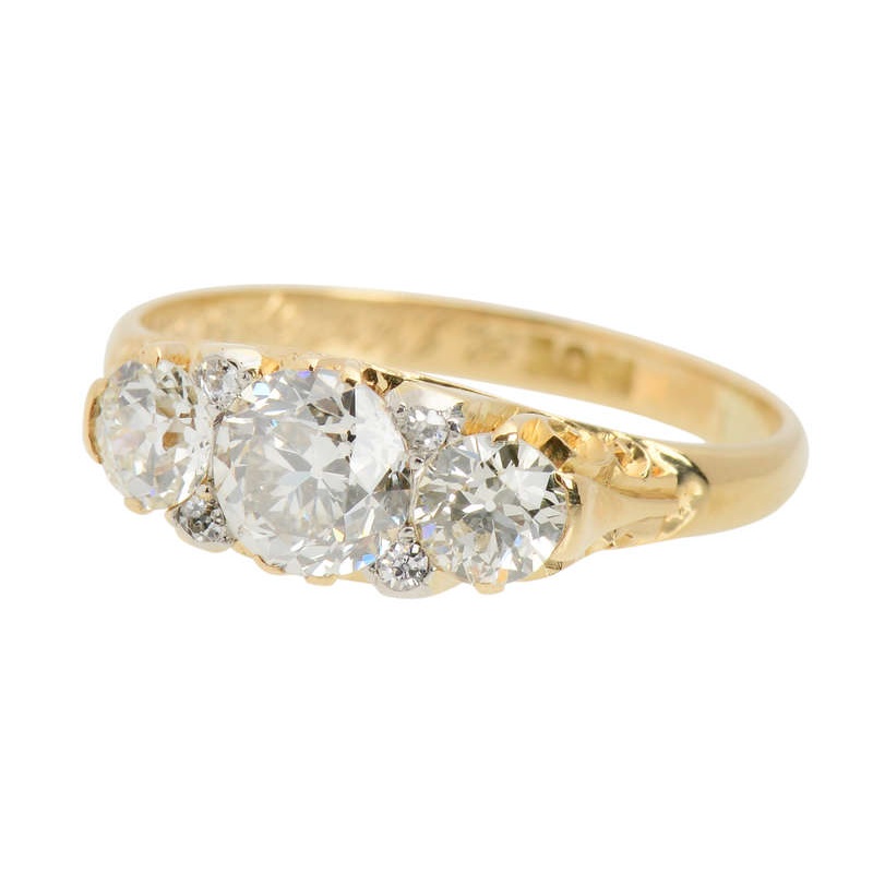 A perfecta of antique diamonds is hand engraved so we know the exact year this trilogy ring was created, 1917.