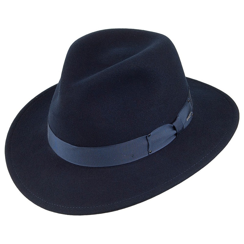 Bailey Hats Curtis Crushable Water Repellent Wool Felt Fedora Hat – Navy Blue S
